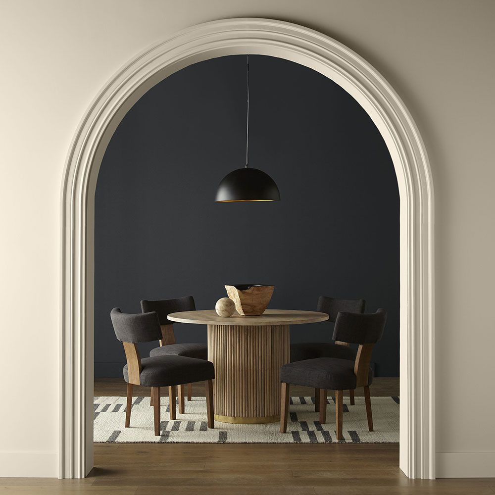 Depending on the setting, Cracked Pepper evokes a connection with nature, brings a sophisticated touch or lends a cozy vibe. Depending on the light, it shifts from a true black to a charcoal grey to a rich navy to a deep evergreen. This ever-changing quality makes the moody black shade a great canvas to experiment with different décor styles.